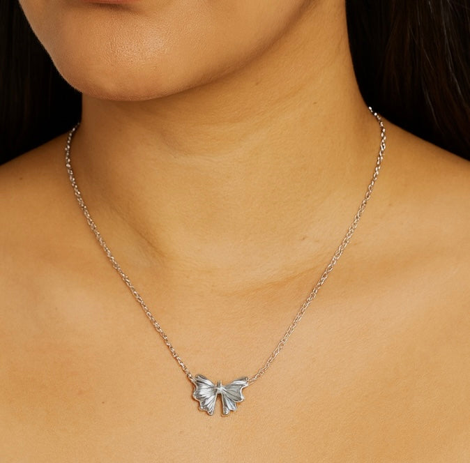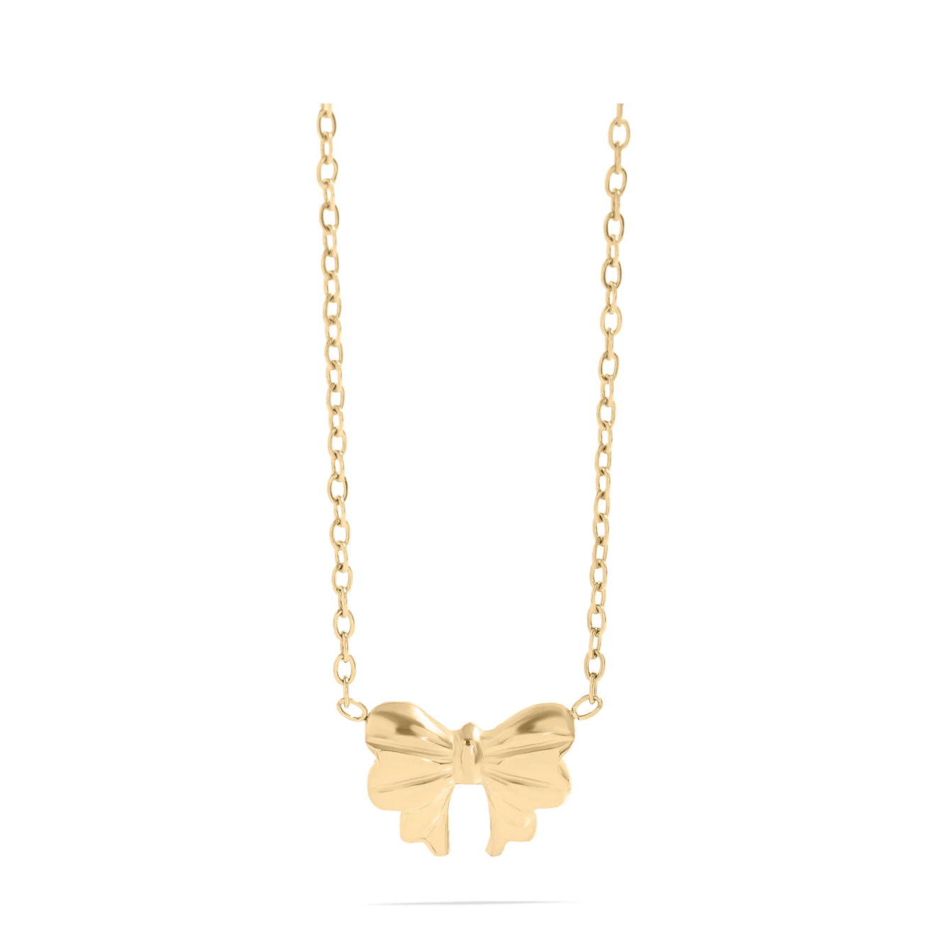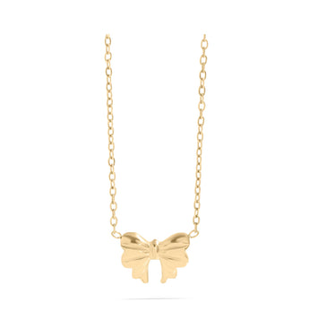 Sweet, simple, and effortlessly elegant. This dainty necklace features a charming bow pendant, symbolizing grace and femininity. Crafted from stainless steel with a radiant 18K gold PVD finish, it's tarnish-resistant and perfect for everyday wear. Whether worn alone or layered, it adds a delicate touch of charm to any look.