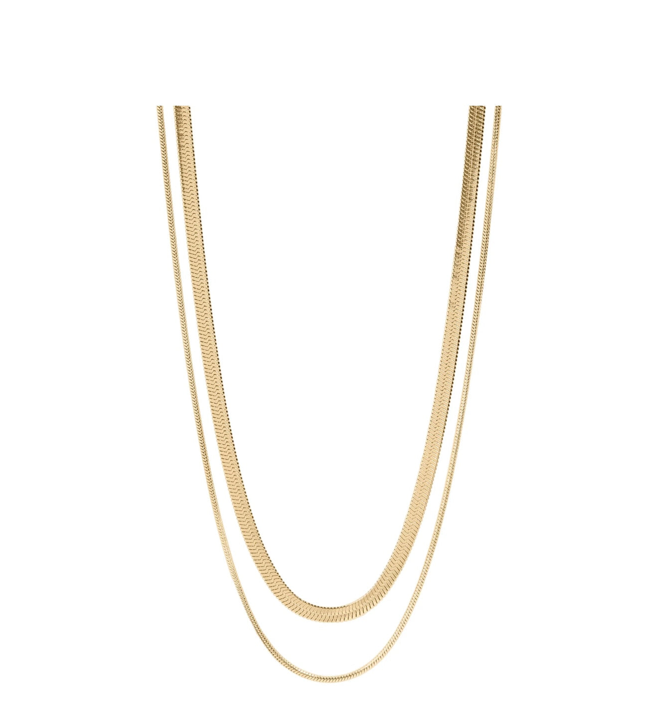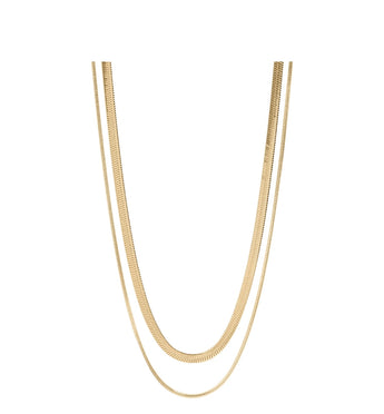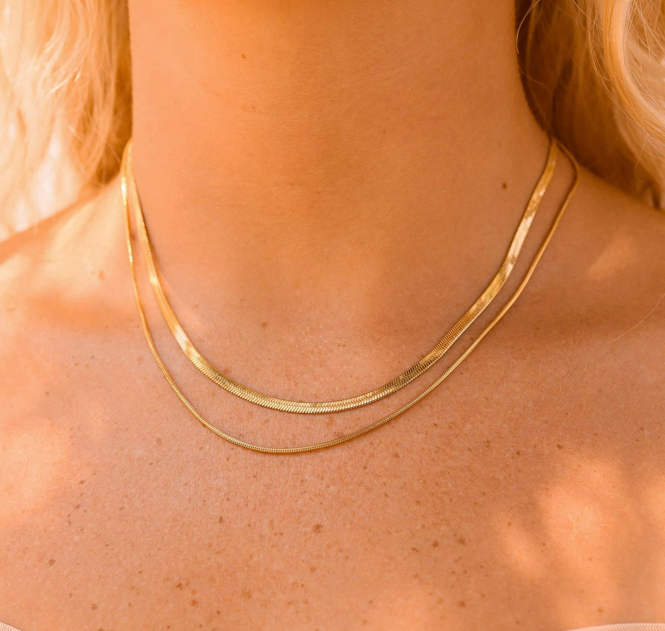 This new layered herringbone and snake chain necklace is a classic accessory that adds to any outfit or ensemble. crafted from high-quality stainless steel as well as 18K Gold PVD these necklaces will never fade, tarnish, or turn your customer's skin green. This necklace is a staple in any storefront or personal collection. grab your while they last!