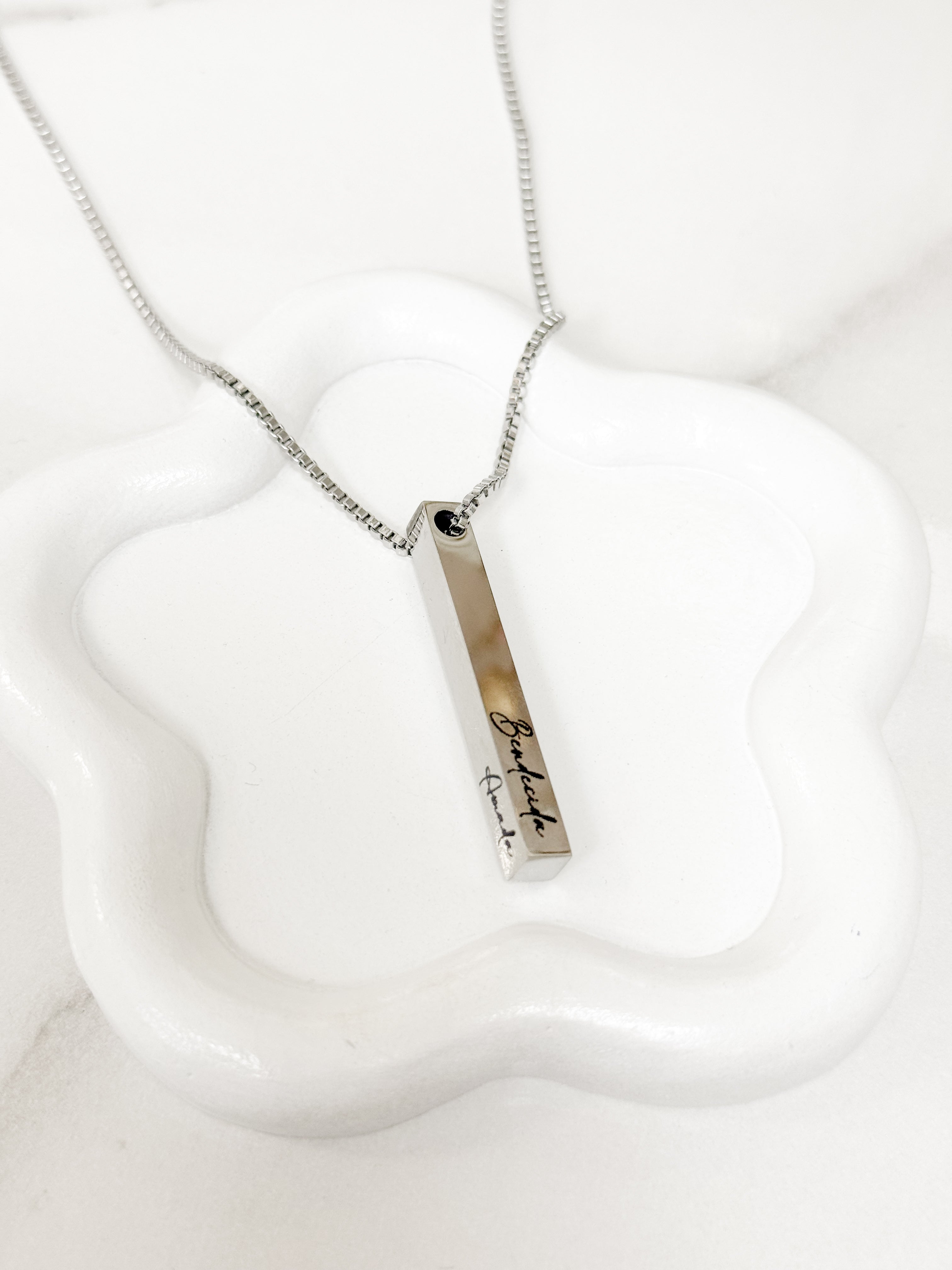 Una pieza que habla por ti, incluso cuando estás en silencio. Esta elegante cadena en acero inoxidable lleva grabadas tres poderosas palabras que reflejan tu caminar de fe: Bendecida, Restaurada y Amada.