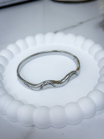 Inspirado en la fluidez del movimiento y la elegancia natural, el Bangle Wave deslumbra con su diseño ondulado y el brillo delicado de las zirconias incrustadas. Su estructura pulida en acero inoxidable refleja sofisticación y modernidad, convirtiéndola en una pieza versátil que realza cualquier estilo.